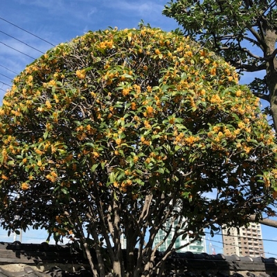 境内のきんもくせいが満開です!みかんも順調に育っています。ここからは鳥との戦いです。鳥たちもこのみか…