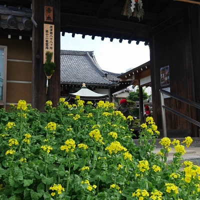 山門の菜の花が見頃です。極早生という種類で、菜の花の中では一番早く咲きます。寒い環境でも清楚で力強…
