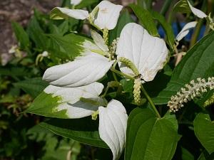 水辺に群生する姿が美しい半夏生。花が付く頃に上部の葉が白くなるという特徴をもつ、ドクダミの仲間です。…