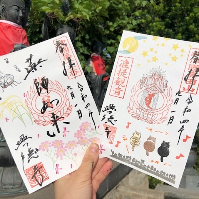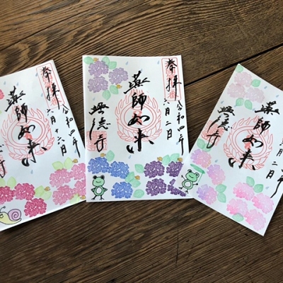 薬師如来様の御朱印は境内に咲くアジサイをイメージし、准堤観音様は池の金魚と睡蓮をイメージしました。…