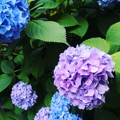 興徳寺の境内にはあじさいが咲き乱れています。よく目にするアジサイの他に、カシワバアジサイやアナベル…