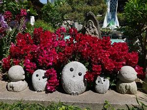 境内の池の周りに奉納されているお地蔵様に季節の花冠。この風景を見て、参拝された皆さまから『ほっこりし…