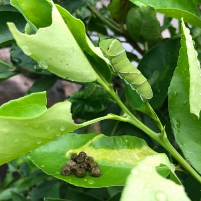 境内のみかんの木にはアゲハチョウの青虫が元気に育っており、子どもたちが青虫を探しにやってきます。葉…